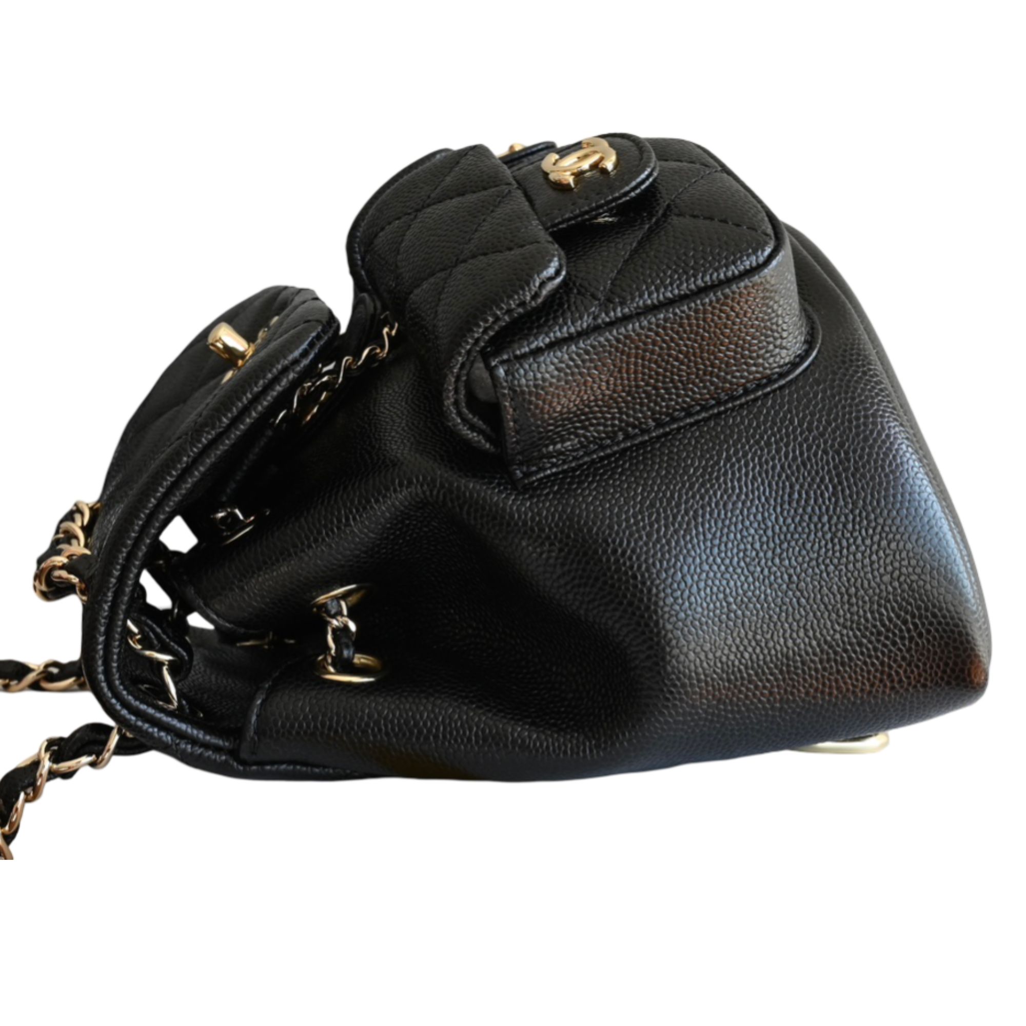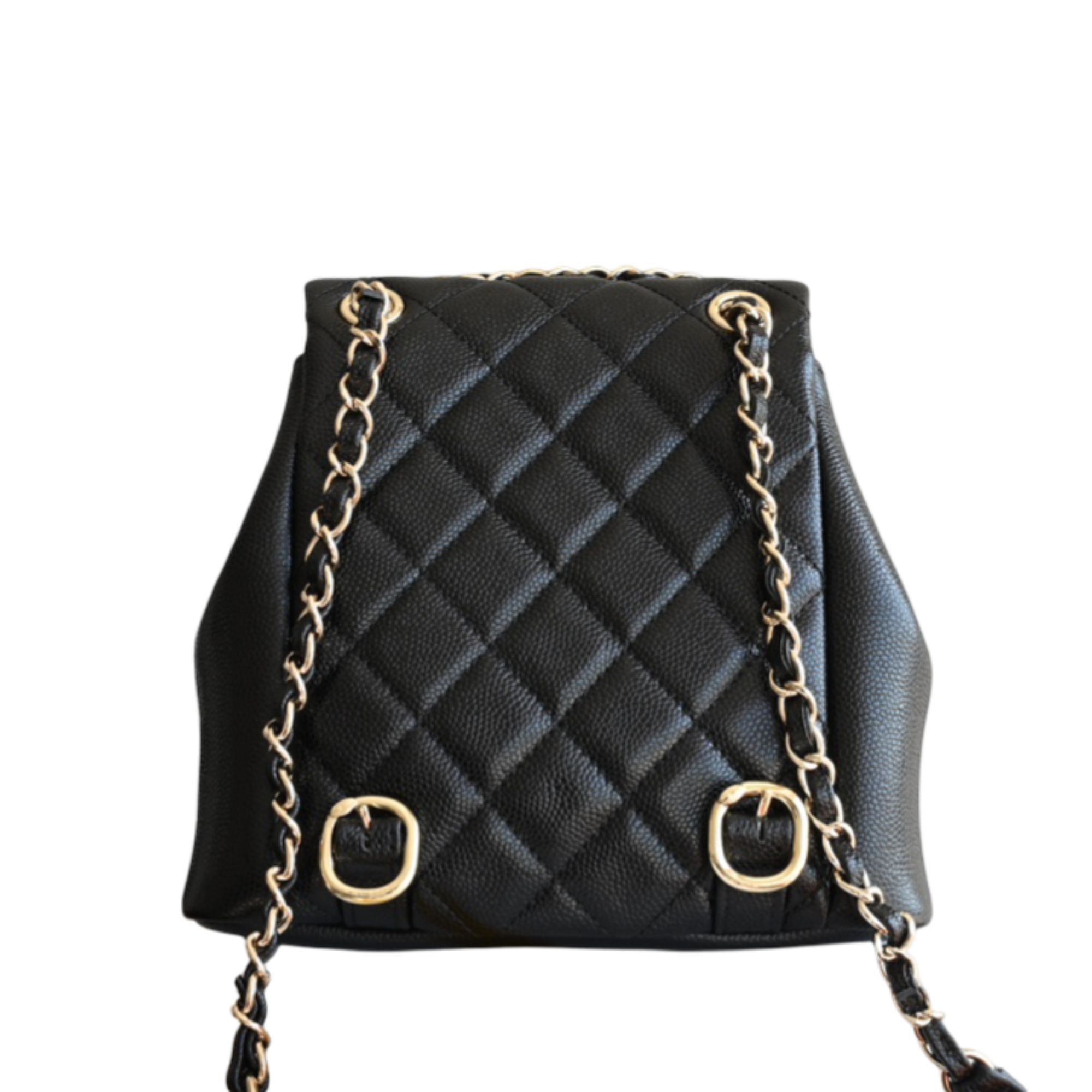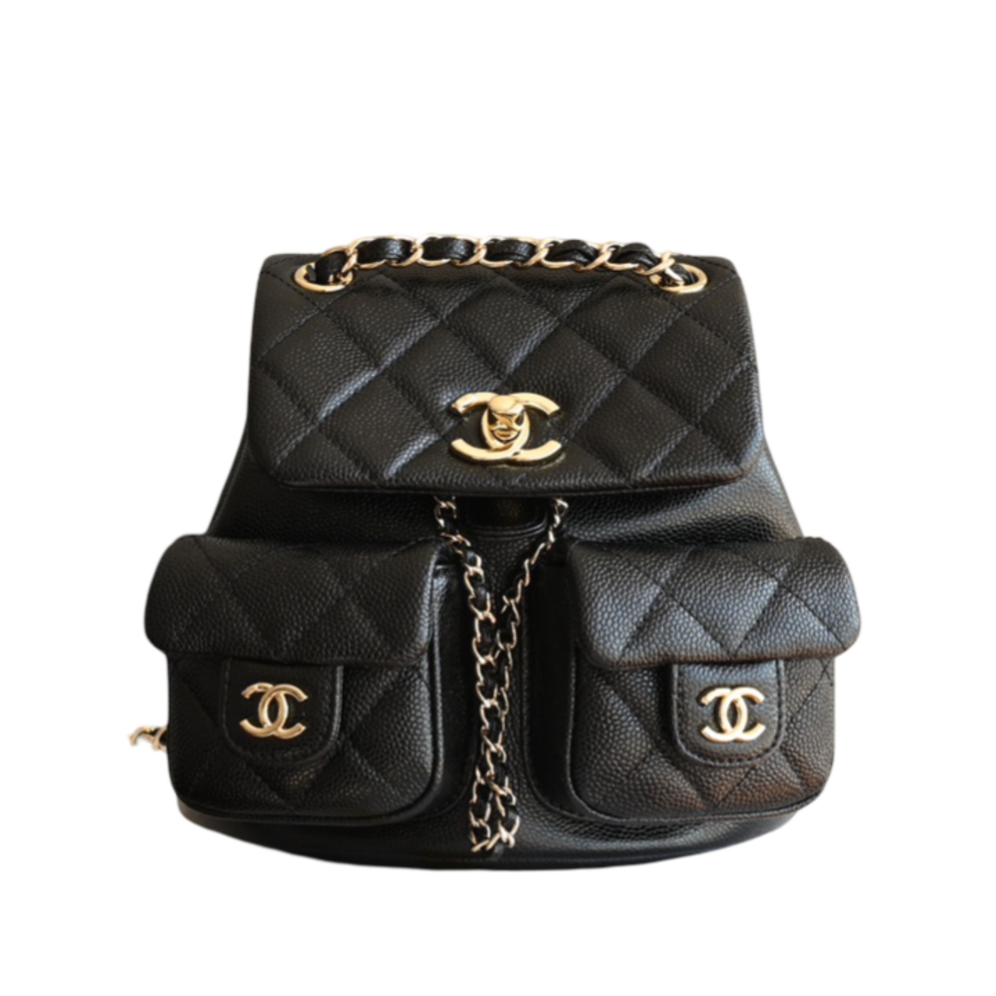 A timeless Chanel icon reimagined — this 24A mini backpack features luxe grained calfskin, twin pockets, and soft gold hardware for elevated daily wear.