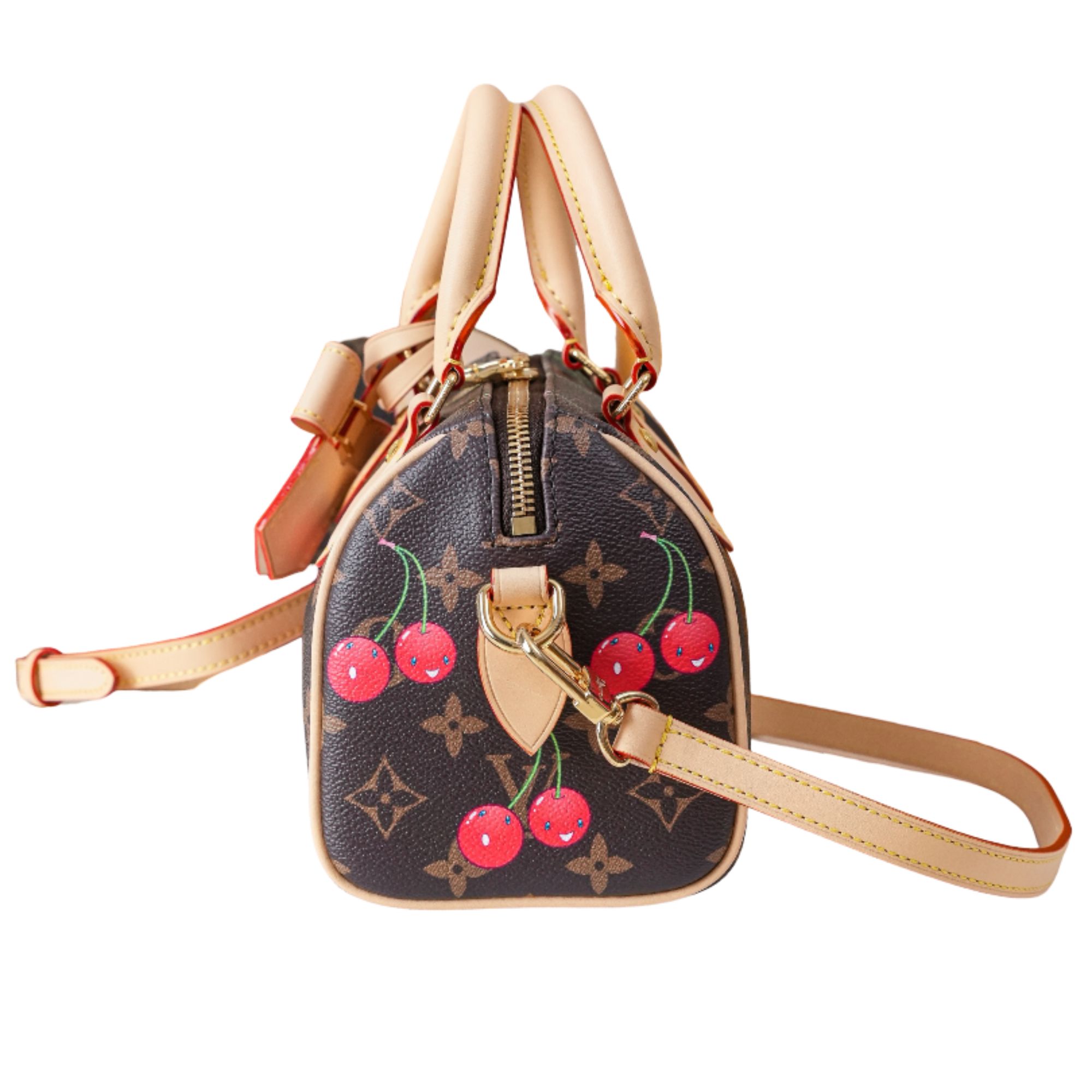 The gold-tone hardware, dual zip closure, and structured silhouette echo the classic Speedy style, while the cherry motif adds a burst of personality, making it a standout accessory for collectors and fashion lovers alike.