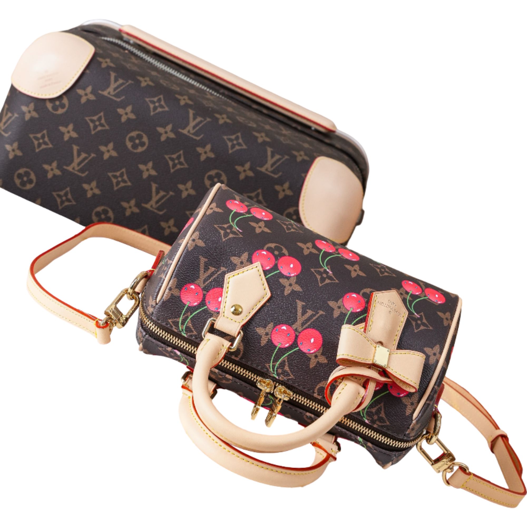 The LV Speedy 20 Bandoulière – Cherry Edition brings back a cult-favorite print from Louis Vuitton’s legendary collaboration with artist Takashi Murakami. Reimagined in the signature Monogram coated canvas and adorned with joyful cherry illustrations, this compact bag captures the perfect mix of whimsy and timeless fashion.
