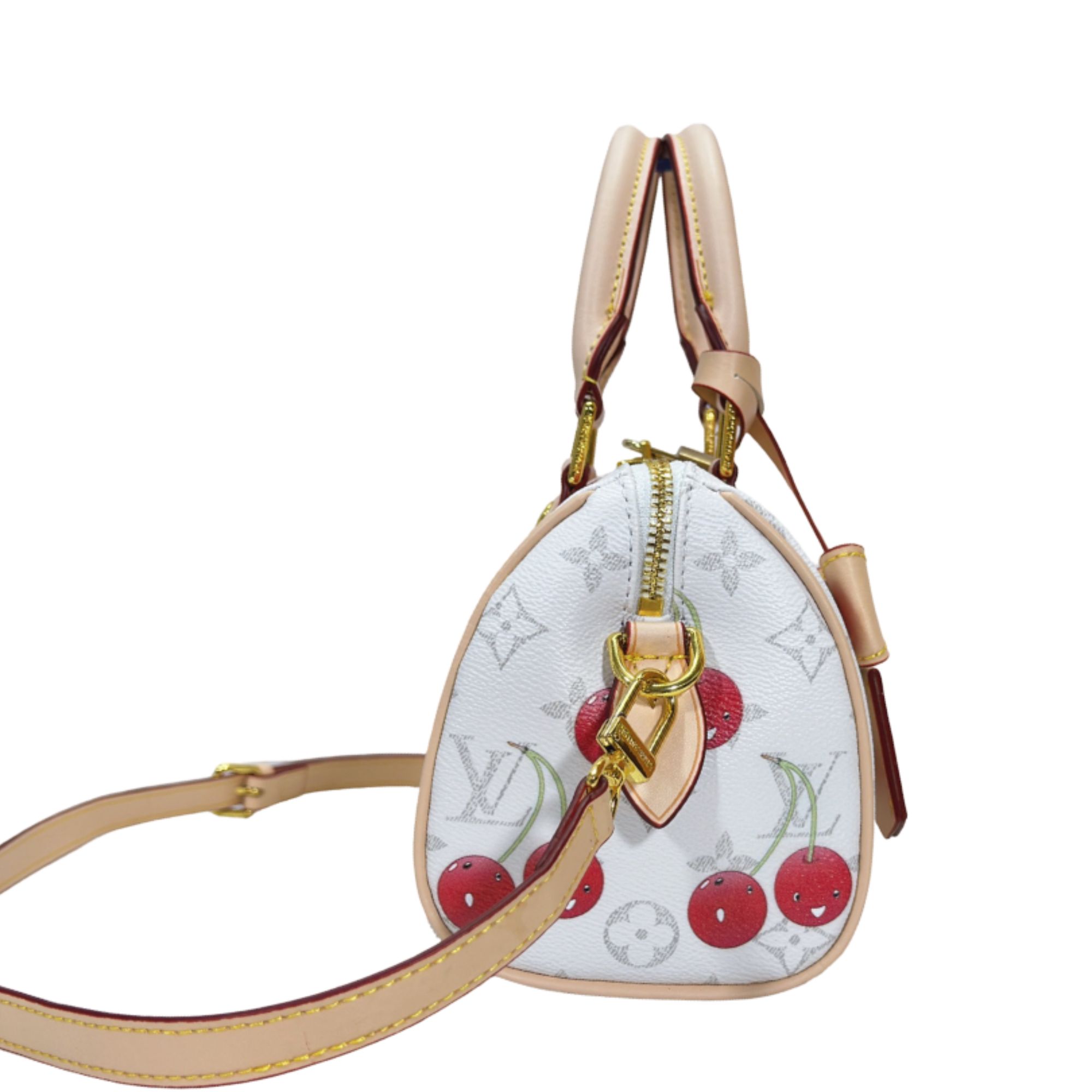 The standout accessory? A matching LV x TM key charm that adds extra personality to the design. Gold-tone hardware and a dual zipper closure bring in the timeless Speedy DNA, while the cherry artwork injects fun, nostalgia, and collector-worthy style into your rotation.